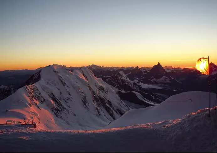 La discesa sulla parete ovest passando per il colle del Felik e il rifugio Quintino Sella mt 3585. Da qui si cammina per pietraie e sentiero fino al Colle Bettaforca mt 2670. Rientro a Gressoney con gli impianti.