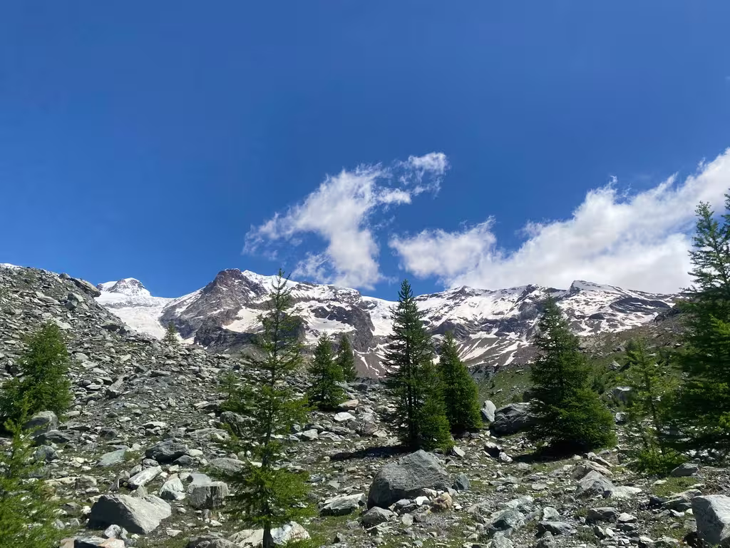 si approfitterà di un passaggio in fuoristrada per raggiungere il piano di Verra guadagnando sul cospicuo dislivello e sviluppo di salita, partendo da Champoluc. Dal piano di Verra superiore a quota mt 2300, attraverso la spettacolare salita sulla morena che divide gli omonimi ghiacciai, si passa dal tipico rifugio Mezzalama. Da qui si prosegue sul costone fino a giungere ad un lembo terminale del ghiacciaio sotto allo sperone dove è collocato il rifugio Guide d’Ayas. L’ultimo faticoso risalto è facilitato da strutture, scale e passerelle, che conducono alla meta a 3400 mt. di quota.